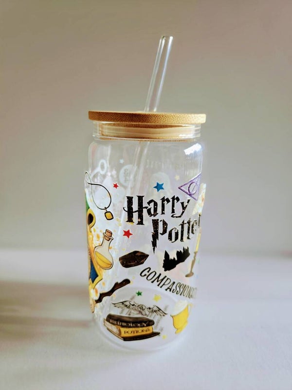 450 ml Trinkglas mit Uv Dtf Aufkleber und Glas Strohhalm + 1 Überraschung