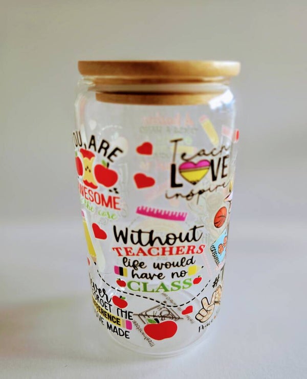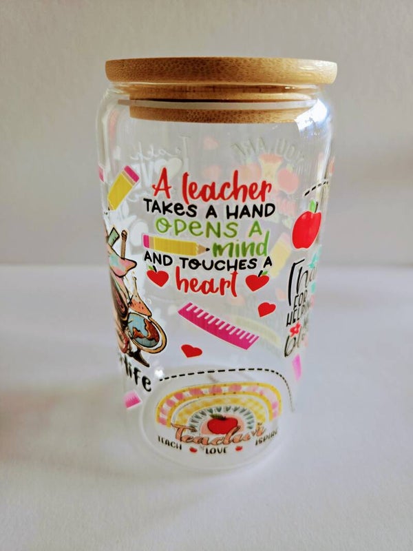 450 ml Trinkglas mit Uv Dtf Aufkleber und Glas Strohhalm + 1 Überraschung