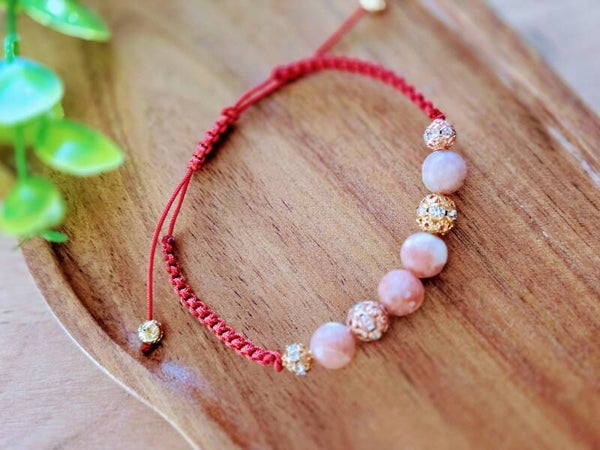 Makramee Armband miit 8mm Edelstein und Metallperlen