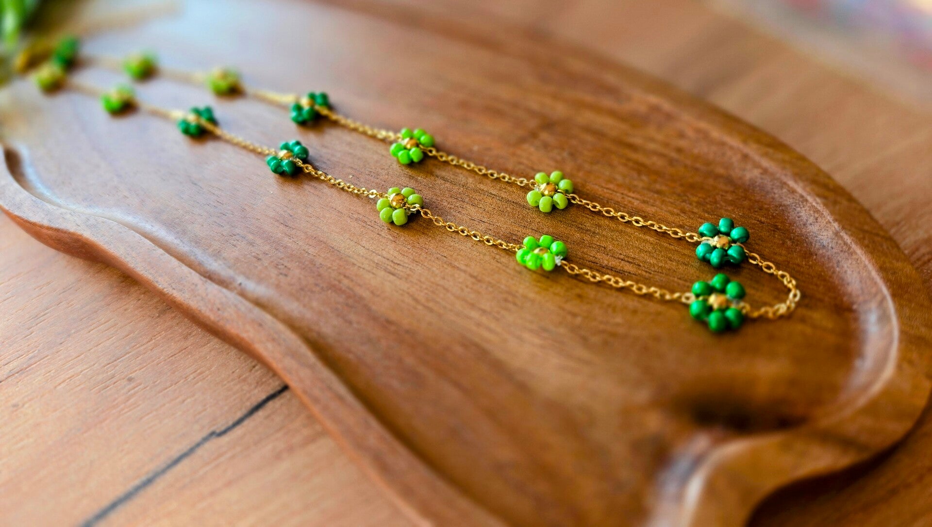 Blumen aus 3mm Grosse Glas perlen mit Edelsthal halskette
